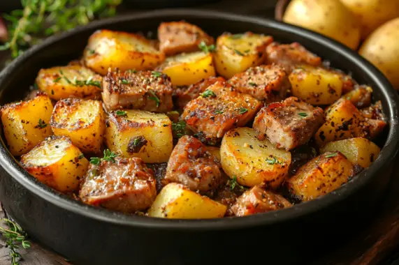 Свинина, Картофель, Лук красный, Масло подсолнечное, Масло сливочное, Розмарин, Сыр Моцарелла